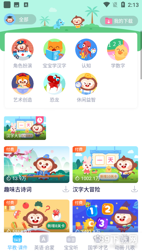 2、平台内涵盖了数字、音乐、故事、艺术、国学等等多个领域,可以帮助小朋友启蒙学习,培养对学习的兴趣,激发潜能,还有有趣好玩的亲子小游戏